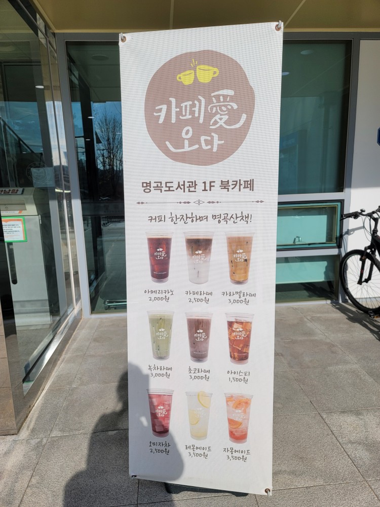 종합자료실은 주말에는 오후 18시에 문을 닫기에 출출하기도 해서 1층 카페에 갔어요.